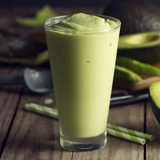 Avocado, spinach, banana, calamansi (Philippino lime) juice, stevia, water